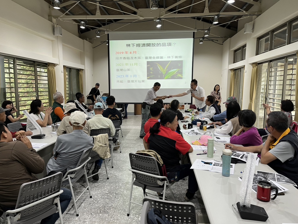 林業保育署臺中分署表示,今年度林下經濟全品項課程內容精采多元,並設置段木香菇、森林蜂產品、臺灣山茶及天仙果等4處實作示範區,除了邀請專家介紹各品項環境選擇、栽培與採收等經營管理、加工與商品開發、產業市場現況、成本利潤分析、風險因應等相關課程。