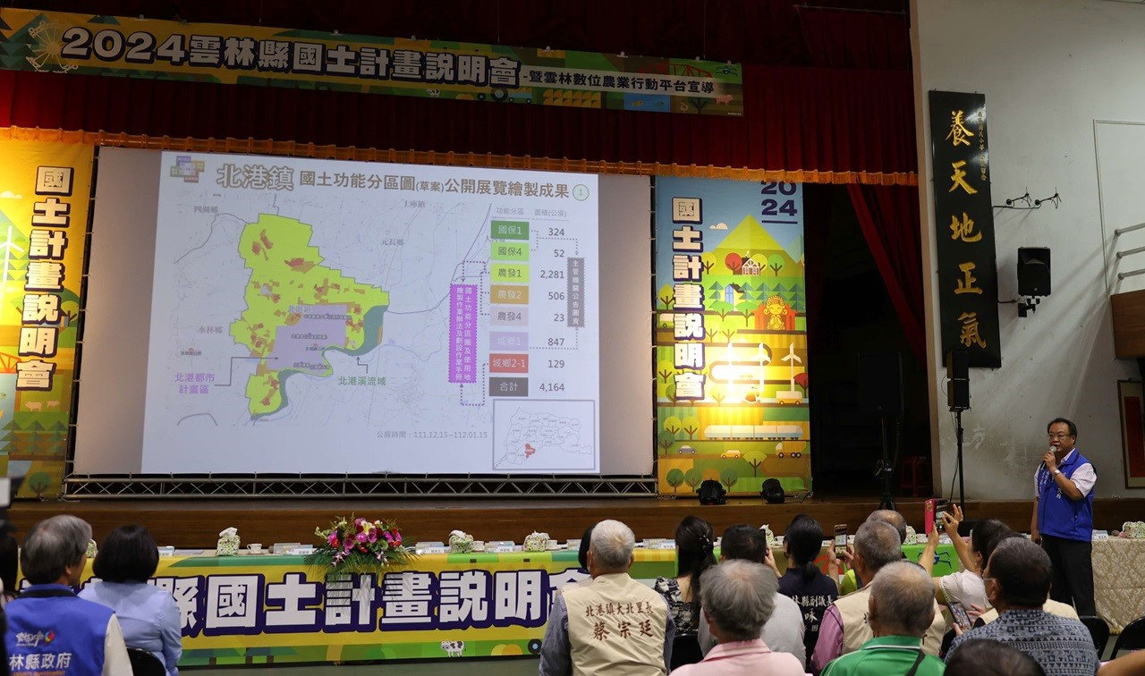 【記者蘇峰毅雲林報導】雲林縣國土計畫說明會於22日進入北港鎮南陽國小學生活動中心舉行,縣長張麗善、立委張嘉郡與丁學忠、北港鎮長蕭美文等多位地方代表與民意代表出席。他們一致強調,國土計畫必須將農業權與鄉村規劃納入法規,確保農民權益與地方發展,否則縣府將不會將國土分區圖第三階段草案送交中央。