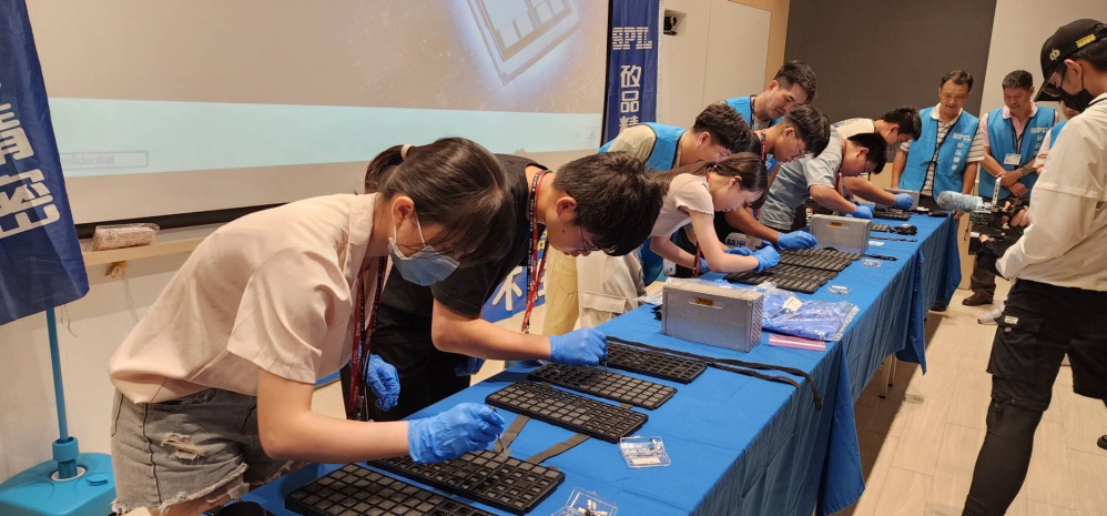 「一日矽品製程工程師」體驗,由矽品和志工社合辦,志工社長李宛樺和幹部吳淑貞、傅瑞芬,連結各部門。