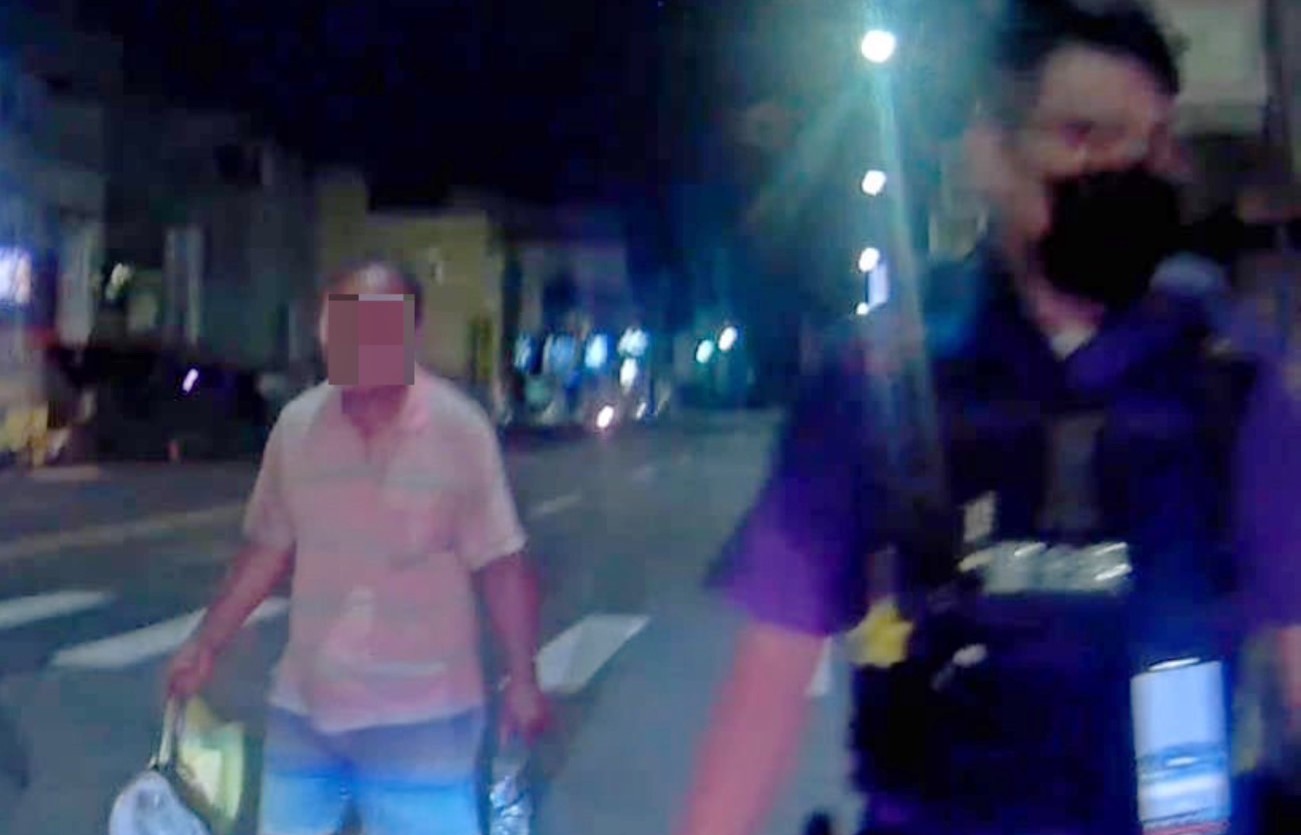 員警夜間巡邏時發現一名老翁獨自步行在臺19線道路上,手中提著物品,情況引起了他們的關注。