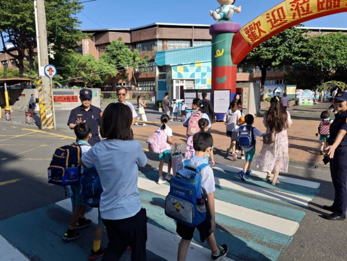 分局說,今(30)日是113學年度第1學期開學日,分局極為重視學童上下學安全,由分局長吳詠傑親自或派員至轄內各小學執行「護童專案勤務」,關心校園周邊交通狀況,提供學童、家長溫馨協助,並與各校師長、導護人員保持密集聯繫,確保學童上、下學安全。