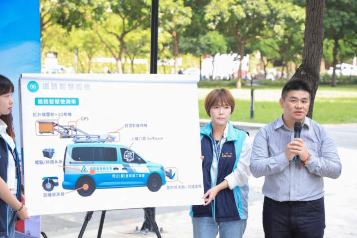 陳大田說明,為確保Red Bull Showrun Taichung展演活動的道路平整度達到國際水準,市府建設團隊特別採用智慧巡檢車進行多次巡檢,進行國際糙度指標(IRI)道路鋪面平整度檢測,經過檢測平坦PCI值平均高達98,已接近滿分,展現市政路的路面平整度及舒適度符合展演賽事高標準的要求。