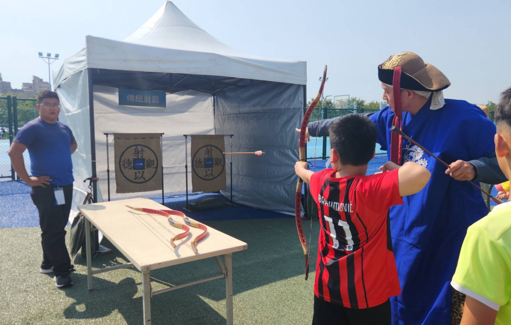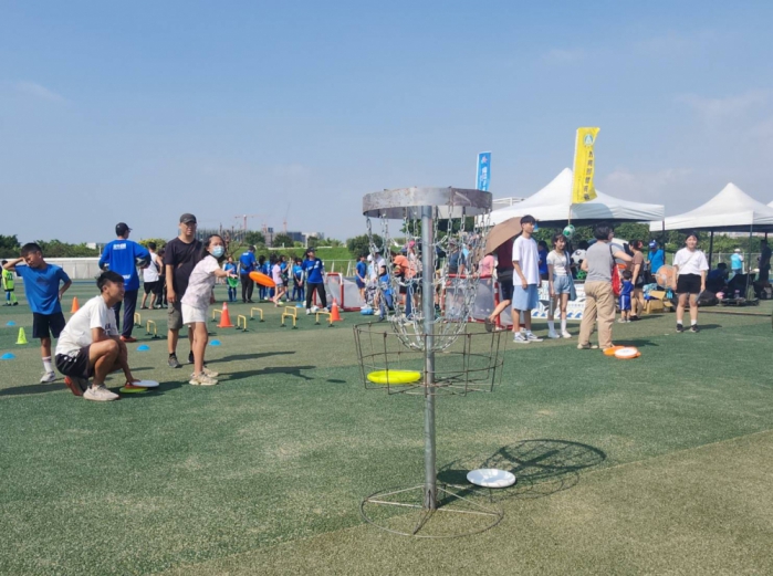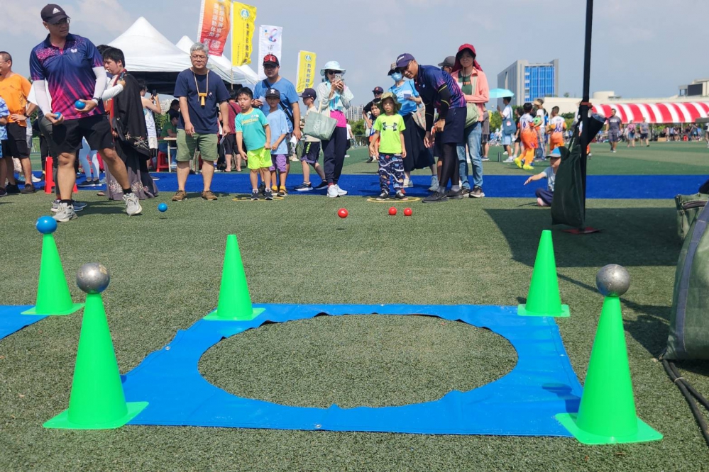 運動局代理局長游志祥表示,運動局致力推廣全齡運動與親子運動,今日現場許多民眾小手牽著大手參加,從親子闖關遊戲帶入多元豐富的運動體驗,包含足球、飛盤、瑜珈、滑板、藤球、劍道、匹克球、滑步車、袋棍球、定向越野、法式滾球、傳統射箭、迷你網球、地板冰壺及籃球賽等。