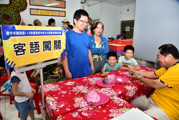 主辦單位豐原區長洪峰明指出,今日活動內容豐富,不僅參與的長官貴賓每人都動手做了六顆「粢粑」分享給現場民眾,還有客語有獎徵答,由五位民眾上台用客語推薦豐原在地的美食、美景,還有應景的中秋月餅(月光餅)客語教學,讓民眾在歡快的氣氛中學客語,更讓許多在地豐原人更清楚知道自己家族的客家源頭。