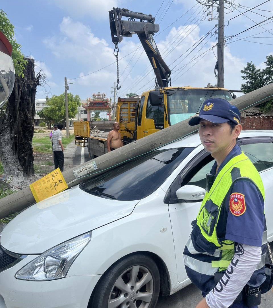 到場後,警方發現事故車輛橫躺在路中,且遭撞斷的電桿壓在車輛上。許員立即開啟警示燈,提醒其他行經的車輛注意安全,並迅速聯繫拖吊車業者。然而,由於斷裂的電桿壓住車輛,拖吊作業一時無法進行。隨即,許員聯繫了五塊村村長蔡龍煙和鄉公所尋求協助。在村長和公所的積極協調下,大型拖吊車業者迅速抵達現場,成功將電桿吊離並移開車輛,迅速恢復道路的正常通行。