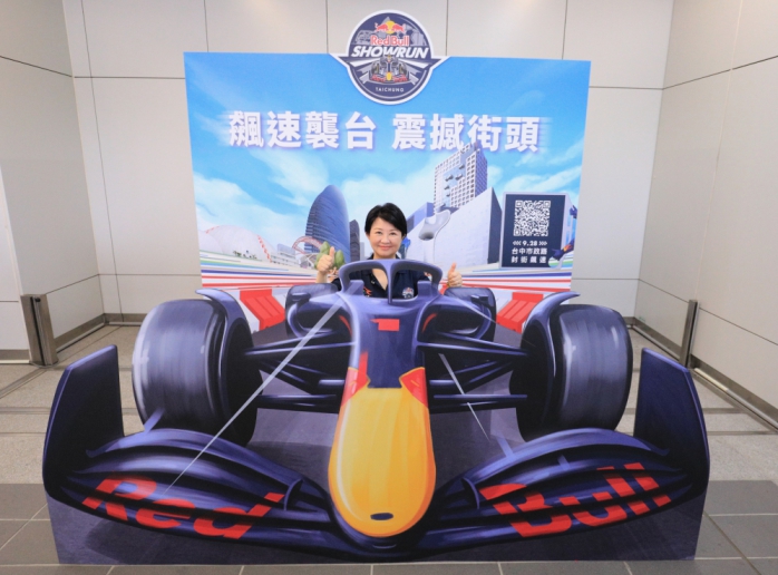 中捷公司提到,為了增添趣味及提高賽車迷的參與感,特別在捷運市政府站1樓、水安宮站3樓(付費區內)及高鐵台中站2樓(付費區內)設置大型打卡牆,打卡牆為雙層結構,旅客可以走進背板,與擬真的Red Bull賽車合影,創造駕馭賽車的錯位視覺效果。