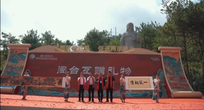 永泰縣領導送出長達4.5米的《閩台張聖君成長圖》錦綢畫卷,台灣嘉賓回贈《一脈相承》書法作品,加深兩岸相互了解和友誼,深化兩岸同根同源文化內涵,共同為兩岸融合發展貢獻智慧與力量。
