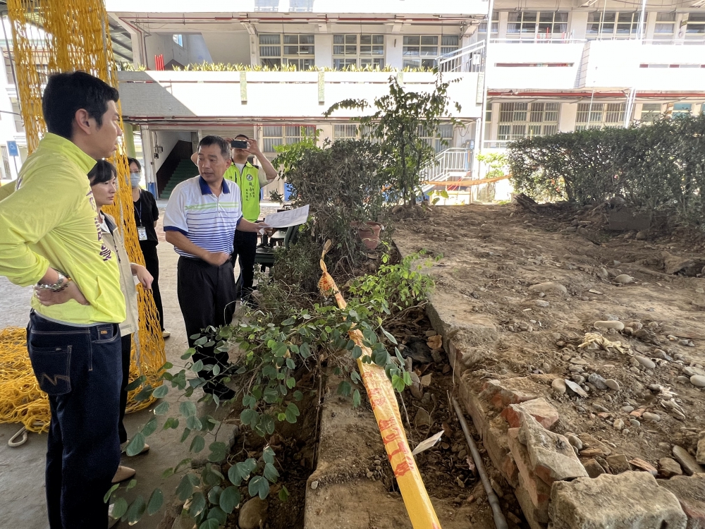 周永鴻表示,潭子國小校長陳銘鎮和學校團隊提出以三大工程改善校園積水問題,包含重新鋪設連結外環道路排水涵管以連結學校排水溝,全長約150公尺;改善風雨球場周邊水土保持及排水設施、修復設備及鋪設地坪,以及在彩舍樓梯間增設鋁百業改善排水。