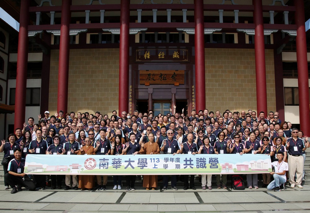 【記者任芳葵嘉義報導】南華大學開學前往佛光山舉辦南華共識營,藉以匯聚全體教師共同集思廣益交流討論,凝聚學校發展策略共識,促進教學品質與行政成效之提升。近年受疫情影響暌違三年於今年恢復辦理,也是高俊雄校長上任後首次率全校教師回佛光山舉行的共識營,董事長慈惠法師特地親臨開示,駐校董事覺禹法師兩天皆全程參與並予以指導。
