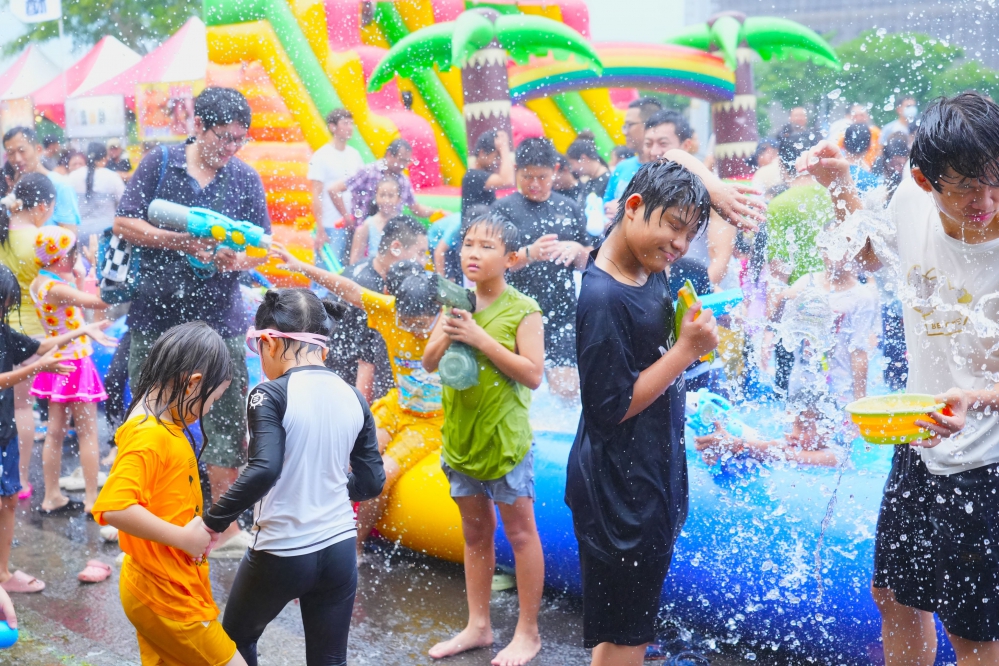 太平區長許貴芳說明,太平潑水節是在地特色活動之一,透過清涼的潑水活動互道祝福,藉此洗去過去一年的不順利,同時祈求新的一年有好運氣,每年吸引上千名大小朋友到場打水仗同樂,現場還有各式地方特色美食攤位、精彩歌舞表演和摸彩活動,讓民眾玩得盡興又滿足,並期盼帶給市民朋友好運氣。