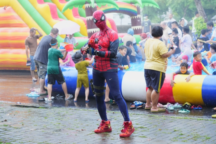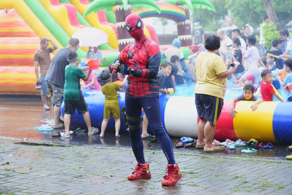 【記者林重鎣台中報導】台中市太平區公所及中山里辦公處,8日在環太東路封路,共同舉辦太平潑水節活動,吸引眾多親子到場嬉戲狂歡,沁涼水柱從四面八方襲來,讓眾人直呼過癮。副市長黃國榮出席與民眾同樂並表示,太平潑水節已邁入第14屆,除慰勞父親終年辛勞,並傳達對新住民的重視與關懷,每年參加人數不斷攀升,已成為當地的重要慶典,感謝太平公所及中山里長閻泰利齊力推廣,促進多元文化融合。