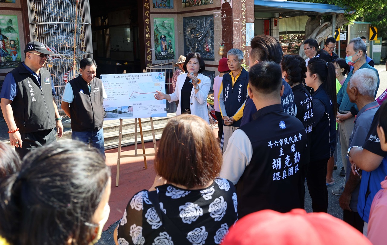 雲82線道路修繕工程說明會於江厝里金熙宮前舉辦 斗六市民會主席胡克勤感謝縣府團隊積極完善偏鄉道路基礎建設,造福鄉親。(圖/記者蘇峰毅攝)