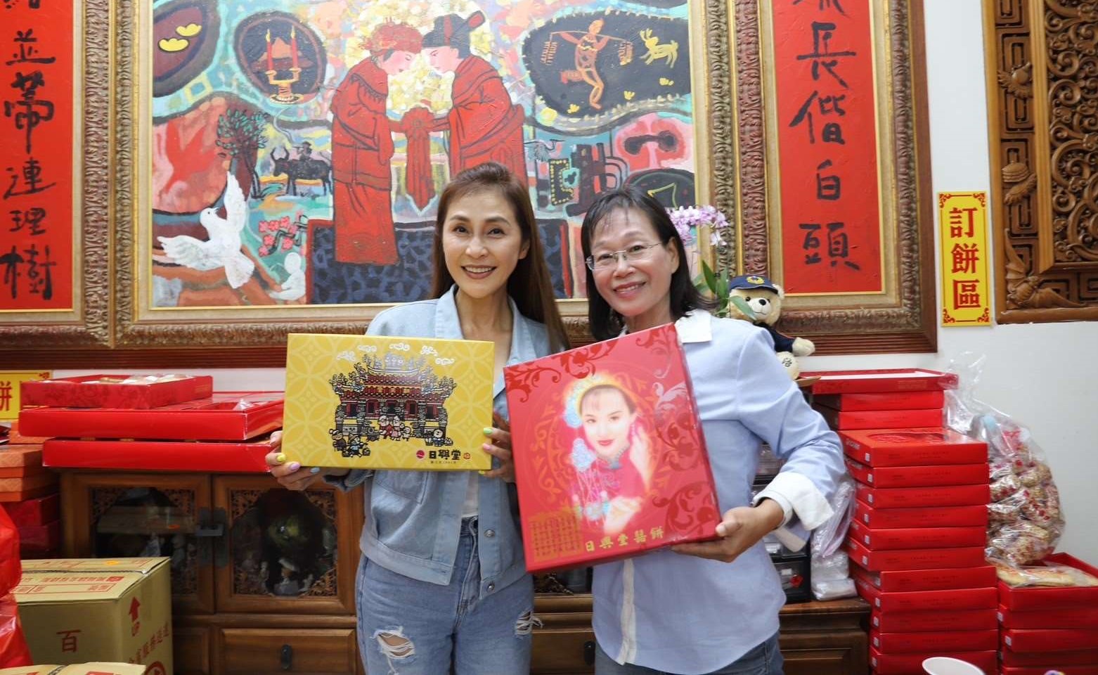 謝淑亞副縣長與藝人梁佑南一同在北港日興堂參與麻荖DIY,藉此推廣雲林的優質海產及傳統月餅禮盒。(圖/記者蘇峰毅攝)