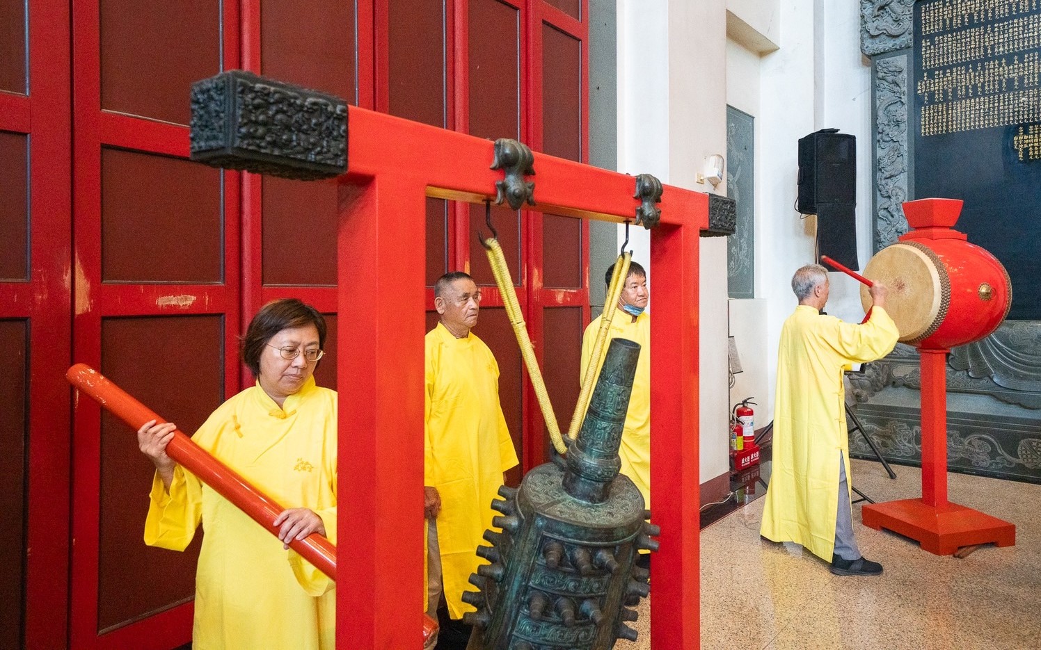 禮樂由台北市孔廟雅樂舞團指導老師孫瑞金、團長劉必先、音樂總監朱台竹率領樂團演奏。(記者蘇榮泉攝)