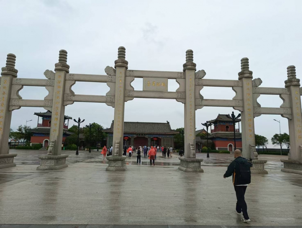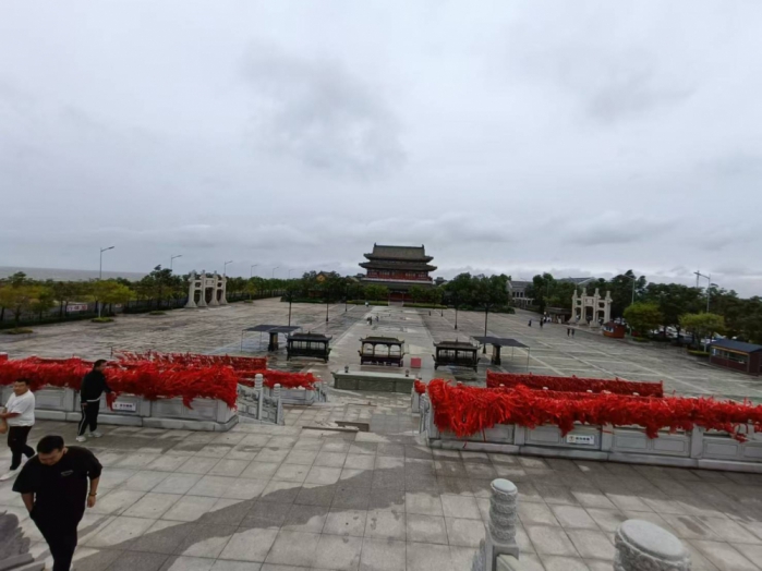 天津濱海新區10日上午下著陣雨,當「2024兩岸媒體行」一行人抵達媽祖文化園參觀時,一下車除了海風陣陣外,雨竟然停了,大家都深感媽祖有庇佑,要讓大家好好參觀媽祖文化園。