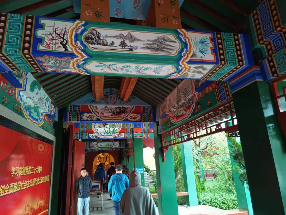 天津濱海媽祖文化園遊廊建築展現中國傳統及媽祖宮廟藝術特色。(記者劉新維攝) -