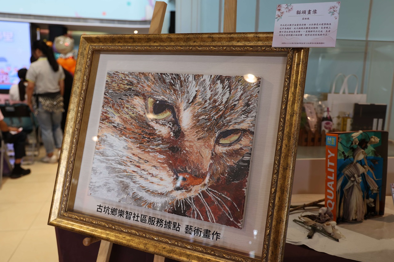 今日活動會場上展示古坑鄉樂智社區服務據點長者精彩藝術畫作。