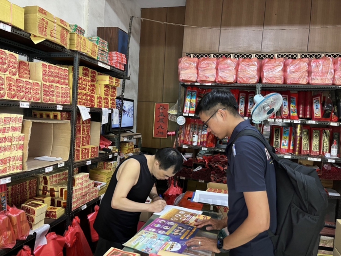 此外,為杜絕相關業者有違法囤積爆竹煙火的情形,近期消防局全面針對轄內金香舖、賣場、書局等場所,加強爆竹煙火查核工作,已陸續查獲違法販賣場所,並依法裁罰及沒入全數煙火。民眾若有發現違法儲存、販賣、施放等情事,亦可撥打119檢舉反映,消防局將立即派員前往查察取締,維護公安不打烊。