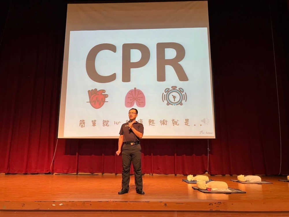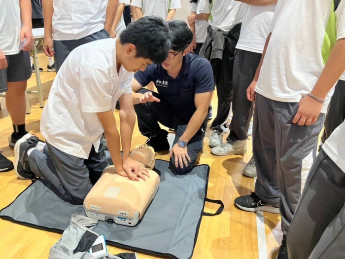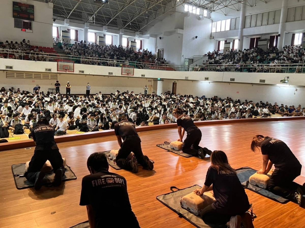 【記者林獻元台中報導】為促使民眾熟悉、珍惜及參與緊急救護事宜,同時推廣及發展緊急救護政策,台中市政府消防局第七救災救護大隊多位救護教官發起於開學期間,在國立中興大學附屬台中高級農業學校教導基本救命術,向學生分享特殊救護案件、推廣急救先鋒APP及聽見AED、禮讓救護車及珍惜救護資源、包紮止血、CPR+AED、哈姆立克法,讓同學體驗並學習救護技術。