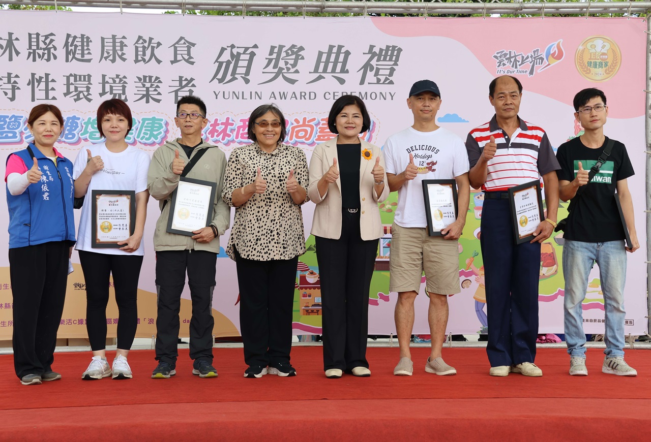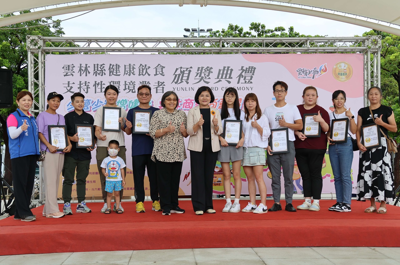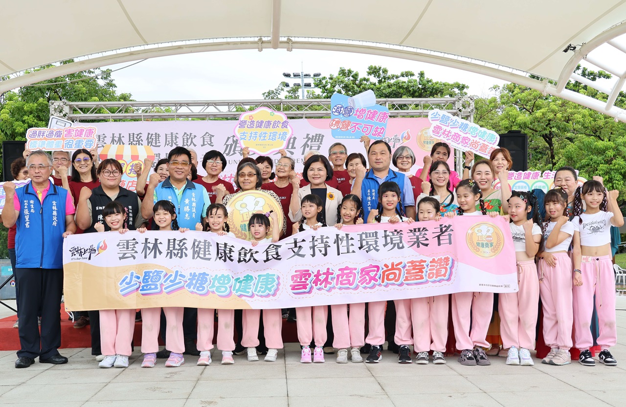雲林縣政府今(14)日在斗六市膨鼠森林公園舉辦「雲林縣健康飲食支持性環境業者頒獎活動」,縣長張麗善表示,病從口入,依據本縣112年十大死因分析,多項慢性疾病,其中惡性腫瘤(癌症)、心臟疾病、糖尿病、腦血管疾病、高血壓及腎臟病變等,均與飲食攝取有關,雲縣衛生局從預防醫學開始做起,大力透過宣導及衛教,教導民眾遠離疾病少油鹽糖的均衡飲食。