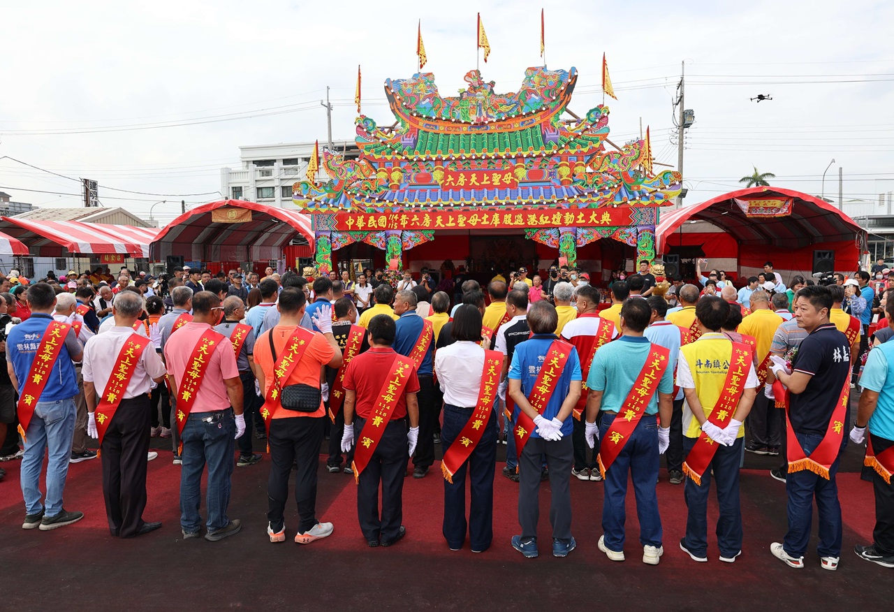 【記者蘇峰毅雲林報導】國家重要民俗「雲林六房媽過爐」114-115年的輪值股由土庫擔任,今(14)日在土庫舉行紅壇動土典禮,吸引眾多信徒共襄盛舉。雲林縣縣長張麗善親自出席並表示,六房媽信仰是許多國人心中的重要力量,透過宗教信仰內化每個人的善心與善念,對於社會的穩定與和諧有著深遠影響。