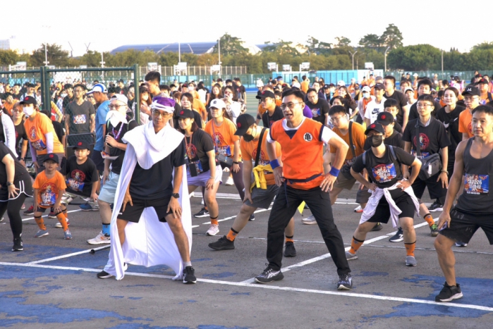 【記者林獻元台中報導】動漫《七龍珠》享譽國際,孫悟空、比克、達爾等主角陪伴大小朋友度過無數懷抱夢想的青春歲月,最熱血的「2024七龍珠Z」路跑,15日清晨於台中中央球場開跑,吸引逾5000名跑友報名共襄盛舉。中市府運動局代理局長游志祥化身「比克大魔王」出席表示,樂見現場有許多小粉絲扮演小悟空,引領全家進入「台中運動學院」,路跑可以鍛鍊體力與耐力,養成規律運動更可以帶來幸福感,鼓勵大家一起跟「七龍珠」主角們奮力向前跑,守護自己的健康。