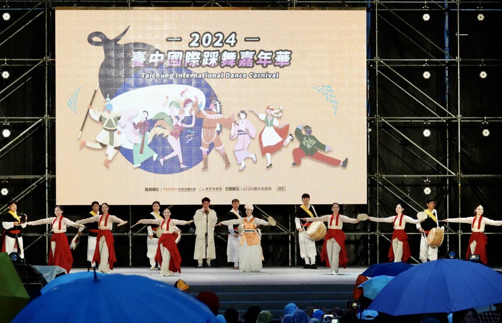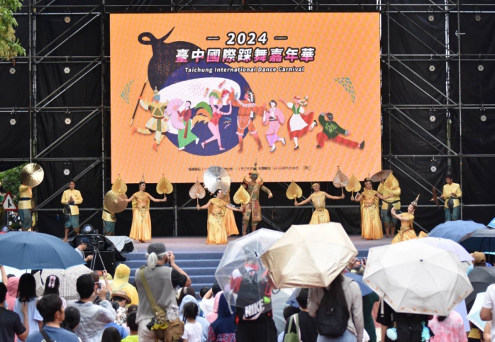 【記者林獻元、張原銘台中報導】2024台中國際踩舞嘉年華14日首度移師至豐原舉行,7組來自日本、韓國、越南、泰國、立陶宛的國外表團及8組國內表演團體,共計342名舞者齊聚豐原,還有24組「全民踩舞趣味競賽」248位參加者粉墨登場,雖適逢鋒面過境,近600名舞者在忽大忽小的雨勢中仍奮力演出。