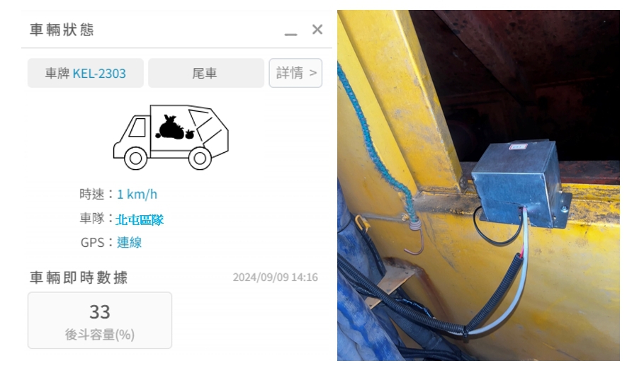 透過導入清運車輛智慧安全管理平台,利用車斗容量偵測功能,可即時顯示收運車輛的承載率,統計數據可預測將滿載的清運點,規劃評估是否以接車換班,或調整收運路線,避免垃圾量超載影響行車安全或導致民眾久候等問題。