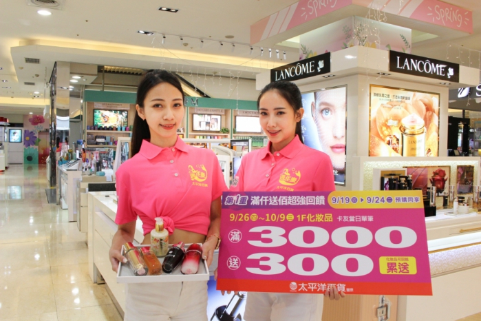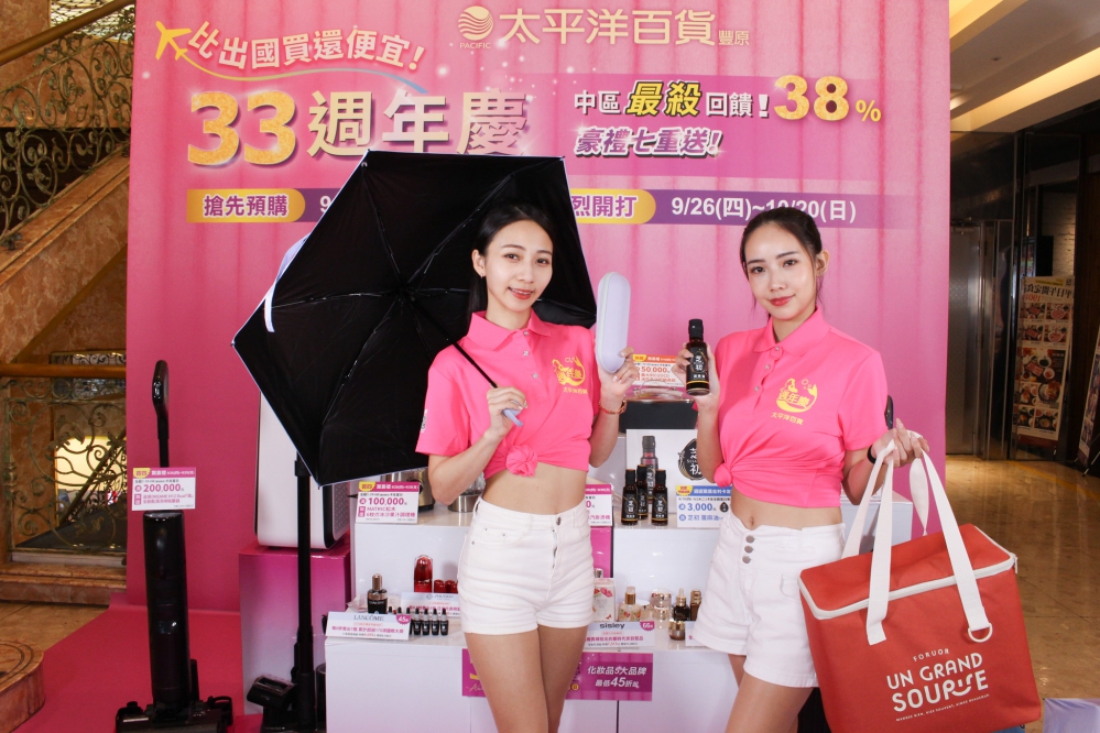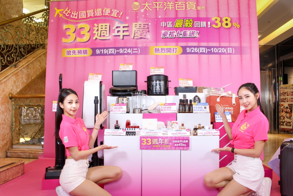 【記者林獻元台中報導】比出國買還便宜!豐原太平洋百貨年度最大檔期週年慶將於9月26日至10月20 (日)熱烈開打,優惠稱霸中區,端出38%最高回饋強勢登場,超強滿仟送佰、預購和首四日推出限定驚喜加碼品牌豪禮、國泰世華信用卡滿額雙重好禮,還有週週驚喜卡友禮,百貨更貼心幫大家做好最佳消費門檻試算表,消費者只要按表操課,就可以輕鬆取得高回饋,譬如化妝品各櫃均有推出特惠商品,買到51000元不含贈品總回饋金額就高達9230元,絕對比出國買更划算!