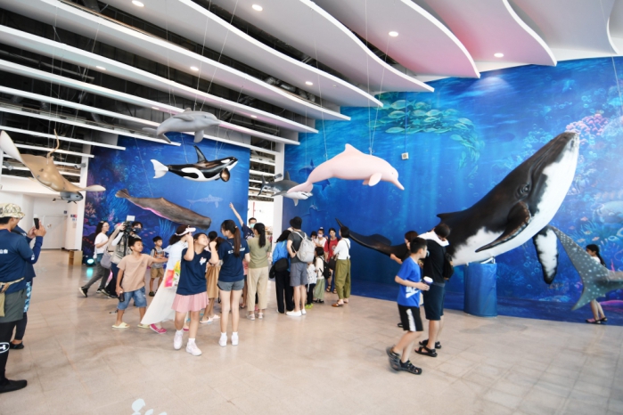 〔記者周為政彰化報導〕海洋生態展開幕,王縣長在「白色海豚屋」與海對話,與鯨豚共舞,王縣長說,以全新風貌亮相,展至10月31日,除有濕地生態、鳥類和中華白海豚外,還有大翅鯨、抹香鯨、虎鯨等台灣海域珍稀海洋生物展示,並設有沉浸式海浪沙灘體驗區,類海洋風,讓民眾得到放鬆,感受海洋寧靜,歡迎親子來探索海洋奇境,開啟彰濱永續新旅程。
