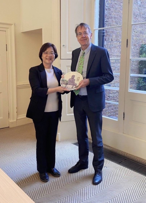 王縣長一行首站拜訪「英國血清銀行」和牛津大學「理查、多爾大樓」,與國際頂尖專家交流生物醫學大數據創新模式和癌症防治策略。