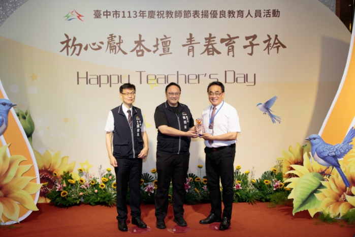 教育是偉大而看不見的工程!教育局長蔣偉民說,盧市長十分重視教育,教育預算占比為六都最高,學生在各方面都有傑出表現,歸功於教師們用心的教導及教育工作者的協助。今日獲表揚的師長都是教育界楷模,今年台中市共有7位師長榮獲教育部師鐸獎、2位退休師長獲頒教育部教育奉獻獎,每位獲獎者都有著動人的教育事蹟。