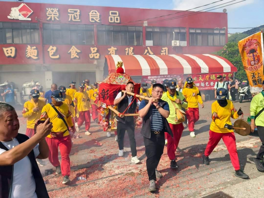 梧棲浩天宮進香團媽祖於20日下午回鑾至台中市海線地區,媽祖鑾駕首站駐駕的是大肚區的王田麵包食品有限公司,該處即聚滿迎駕人潮,董事長孫瑞榮父子還親自出迎抬轎,媽祖鑾駕在該公司駐駕一段時間,讓民眾前往膜拜,因此使得該公司廠房外滿是人潮,該公司為此還特別準備了大量食物及飲料,讓前往參與膜拜的群眾食用。