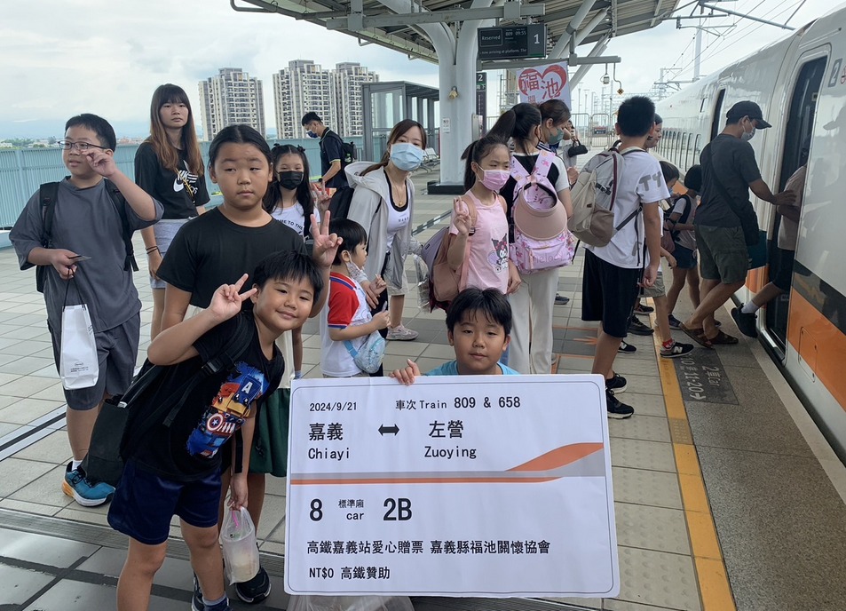 高鐵嘉義站持續深耕在地, 幫助「福池關懷協會」經濟弱勢家庭,搭高鐵前往高雄。(圖/高鐵嘉義站提供)