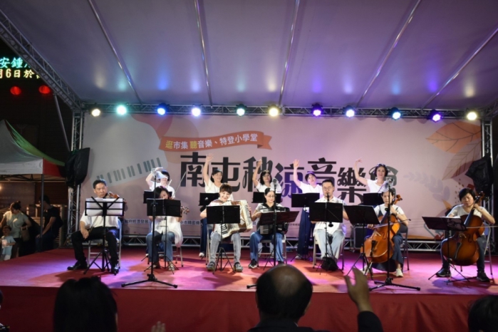 【記者林獻元台中報導】台中市南屯區萬和宮前廣場21日傍晚盛大舉行「南屯秋涼音樂會」活動,邀請大墩國中舞蹈啦啦隊、大墩國小節奏樂團、惠文國小弦樂團、惠文高中國樂團、河堤樂團、逗樂愛樂團、閃亮台中樂團等音樂舞蹈團隊齊聚同場演出。雖然天侯不佳,仍吸引逾千名南屯民眾熱情與會欣賞精彩演出,展現秋涼時光的舞樂魅力。