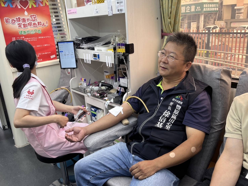 【記者林獻元台中報導】台電中區施工處持續展現公益精神,與台中市豐原區田心里合作,於23日在該處辦公大樓前舉辦愛心捐血活動。不僅吸引了中區施工處的員工及許多路過民眾承熱情參與外,豐原區田心里長徐倍基除動員里民共同挽袖捐血外,也親自挽袖捐輸500c.c.熱血,為社會健康和福祉盡一己之力。