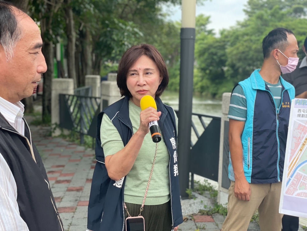 黃馨慧指出,另一處朝貴路(朝馬路至市政北二路)及潮洋溪河岸人行道,鄰近朝馬轉運站,人行密度高。但此處為舊七期,人行道本來就狹隘難行,加上早期城鄉風貌於人行道範圍植樹,致使行人通行淨寬不足90公分,預估改善經費需5千萬元,地方經費缺乏,需中央關心補助改善。