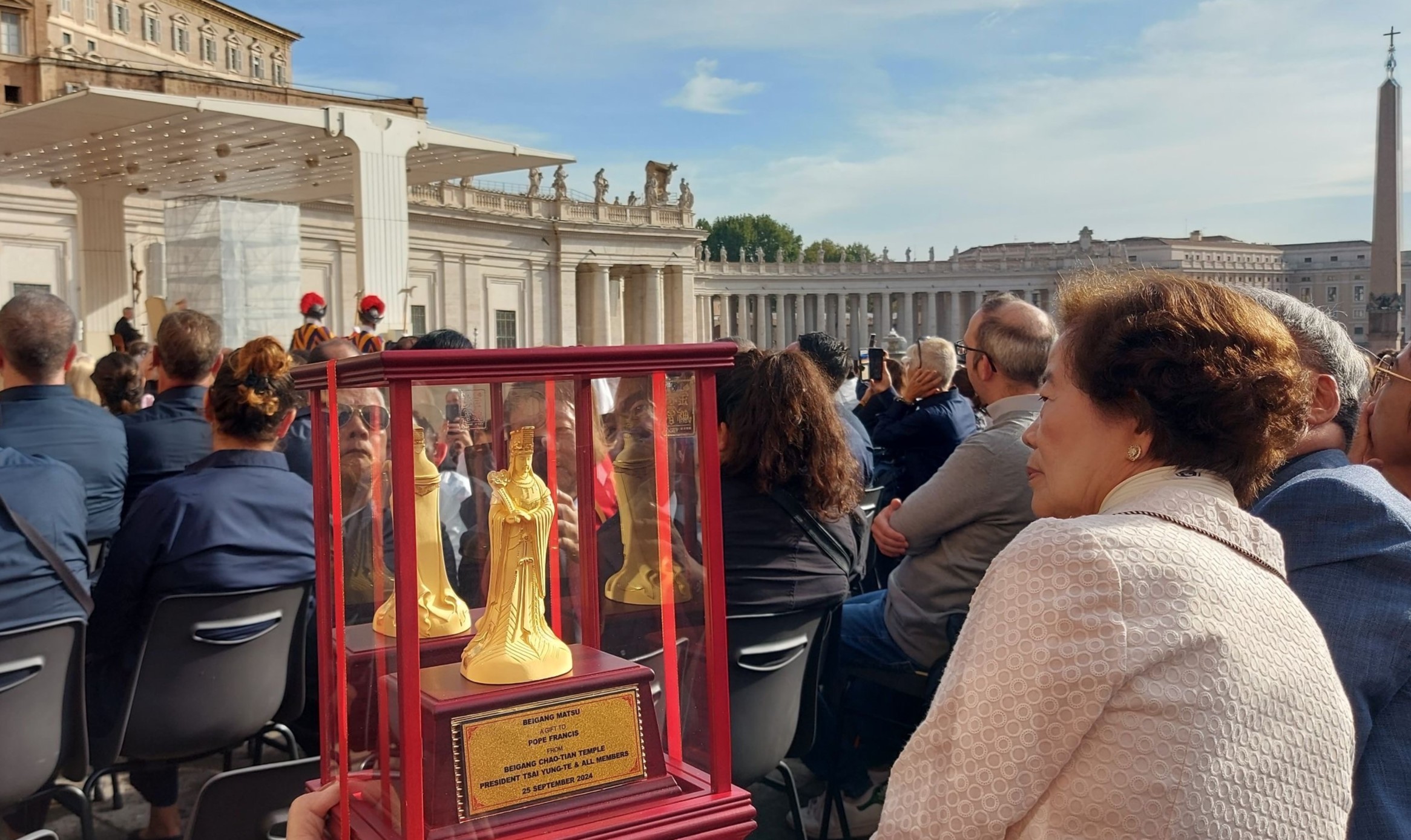 金媽祖神像出現在梵蒂岡廣場,顯示出北港朝天宮在推廣媽祖信仰與促進國際宗教交流上的積極態度。