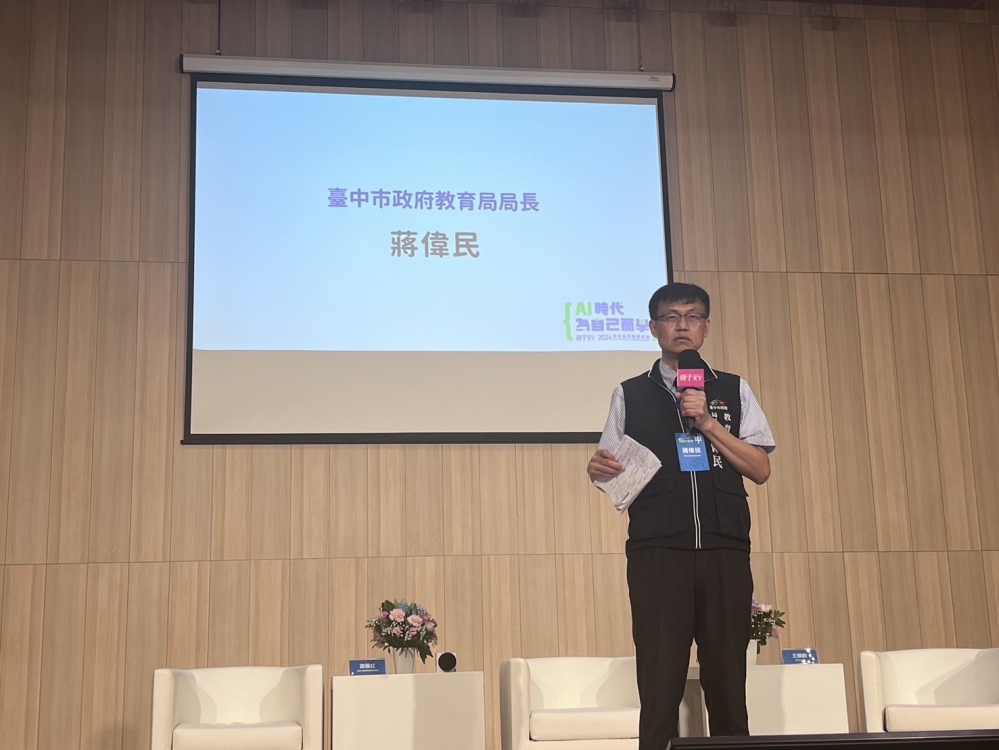 【記者林獻元台中報導】台中市政府教育局與親子天下雜誌合作,27日在安和國中辦理「2024 台中市教育創新國際論壇」,吸引約 300 名教師參加。教育局長蔣偉民表示,此年度主題以「AI 教育 為自己而學」為主軸,邀請國內、外專家學者及實務界教師分享觀點與看法,共同探討在科技化時代,如何提升學生學習動機與好奇心。