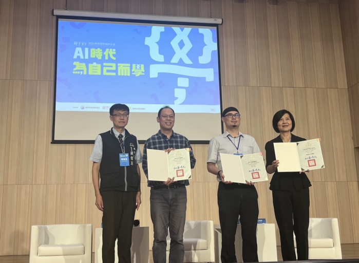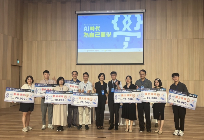 此外,教育局在 112 學年度辦理AI融入國中藝術/國語文領域教學種子教師工作坊,並從中選出優秀教案,今天進行頒獎並邀請得獎教師分享教案的設計與過程,希望未來有更多教師參與,讓AI融入各領域。