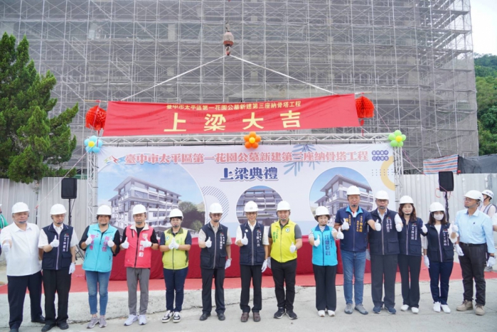 【記者林重鎣台中報導】台中市長盧秀燕重視民眾對殯葬設施服務的需求,為積極解決納骨塔櫃位不足問題,市府斥資3.6億元辦理「太平區第一花園公墓新建第三座納骨塔工程」,27日由建設局長陳大田主持上梁典禮。陳大田表示,市府不只照顧一般市民,對於故人也要慎終追遠,完工後將可提供超過3.3萬個骨灰(骸)櫃位,滿足市民治喪需求。