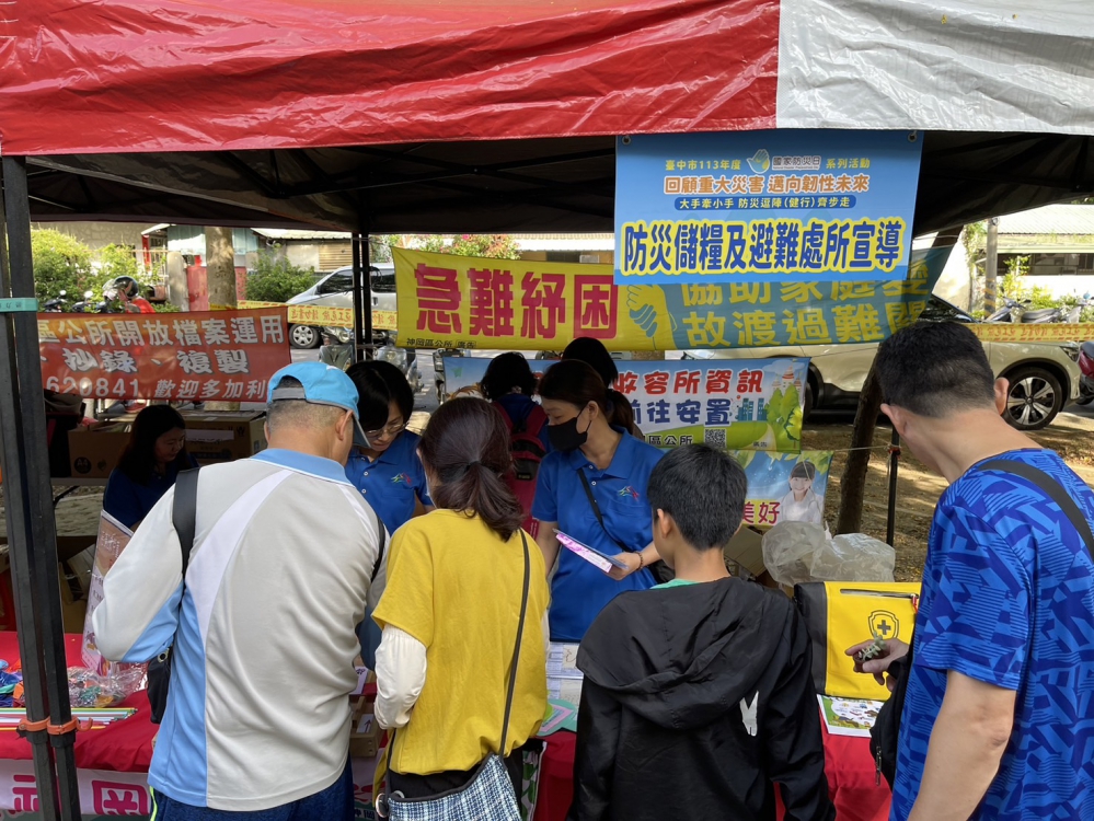 孫福佑說明,活動現場進行防災避難演練宣導,包括當災害來臨時,民眾如何緊急應變,以及實地演練113年全民地震避難演練抗震保命3步驟,並瞭解避難收容所位置,模擬道路及運輸系統因大規模地震造成毒化物洩漏而受損中斷,導致災後返家困難歸宅困難之情境。