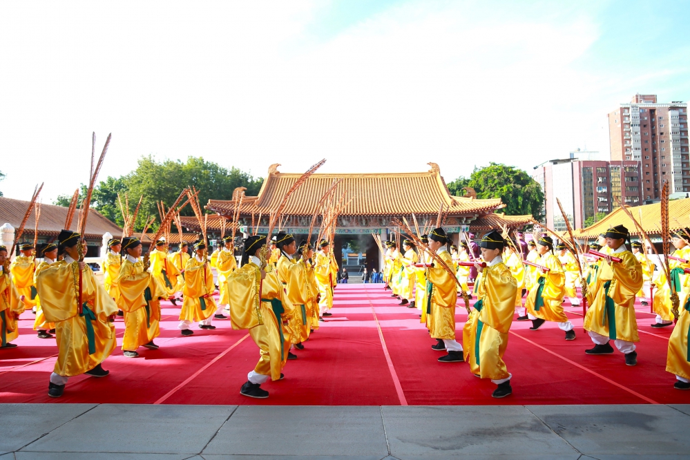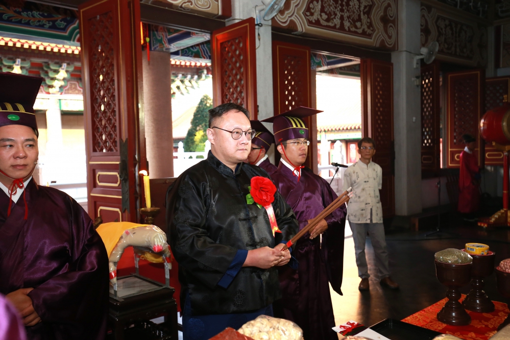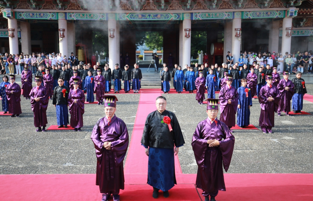 【記者林獻元台中報導】28日是至聖先師孔子誕辰2574周年紀念日,也是教師節,台中市孔廟舉行一年一度的祭孔大典,由副市長鄭照新擔任正獻官,以古禮瘞毛血、迎神、八佾舞及三獻禮等34道儀節獻祭,一早便吸引上千民眾到場觀禮,感受傳統祭孔典禮的莊嚴氛圍。