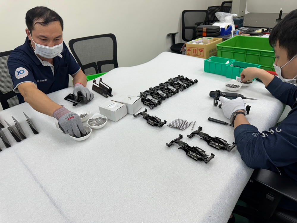台華精技副總經理莊忠益指出,模型製作過程十分複雜繁瑣,鈑金美學設計結合精密板金加工,從雷射切割、CNC車洗加工、雷雕技術、焊接工藝等環節須人員手動處理,須投入大量人力,因此生產製作團隊也是連夜趕工、假日加班,只為讓貴賓如期收到這份精美的賽車模型。
