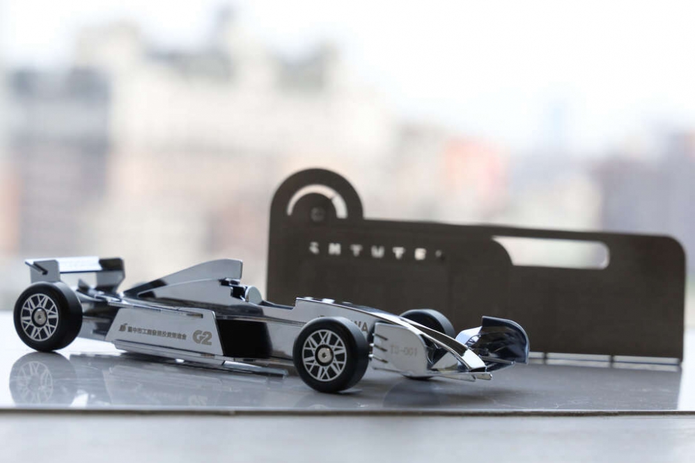 工策會總幹事黃于珊表示,工策會有多次協助大型活動貴賓伴手禮經驗,為使伴手禮契合活動主題,此次主動聯繫邀請台中市金手獎及台中原創TCOD得獎廠商台華精技,希望堪稱「鈑金加工業LV」的台華精技,以鈑金一貫化生產能力及一流的設計美學團隊,協力製作此次國際賽車展演伴手禮,讓賽車模型彰顯台中製造業從開發、設計到生產的強大量能,更讓全世界的貴賓看見台中不僅是智慧機械與精密加工製造業產業聚落,更是具備設計力與美學的文化都市。
