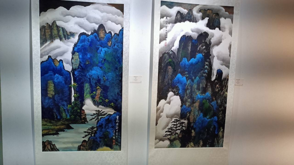 洪如萍介紹了這次自己展出的兩幅山水作品,分別是《青峰雲嵐》、《萬山流雲》,與其說是描繪山水,這兩幅所述說的更是一種思維,體會人生就像是爬山,抬頭望總覺得山頂離自己好高;有時荊棘密布、雲霧繚繞看不清前頭的路,只能著眼腳下一步步往前,但常常暮然回首卻發現自己不知不覺已經越過一山又一山,即將登頂。