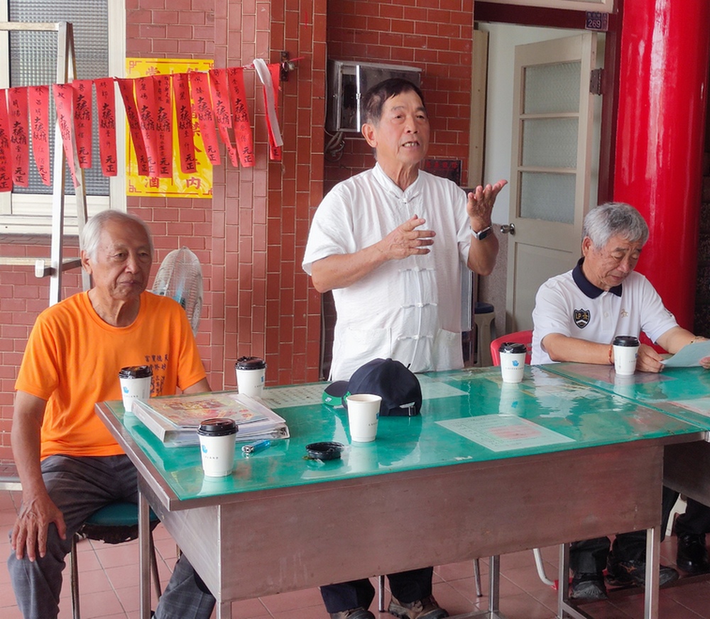 大林天德寶宮妙修堂主委邱兆宗說明妙修堂護國消災法會特殊點。(圖/記者任芳葵攝)
