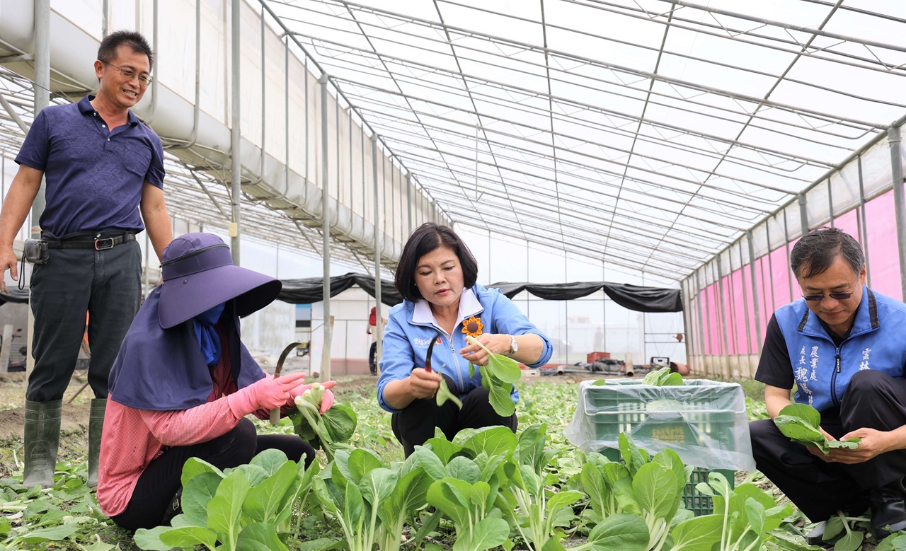 山陀兒颱風來襲 張麗善縣長巡視葉菜類搶收情形。