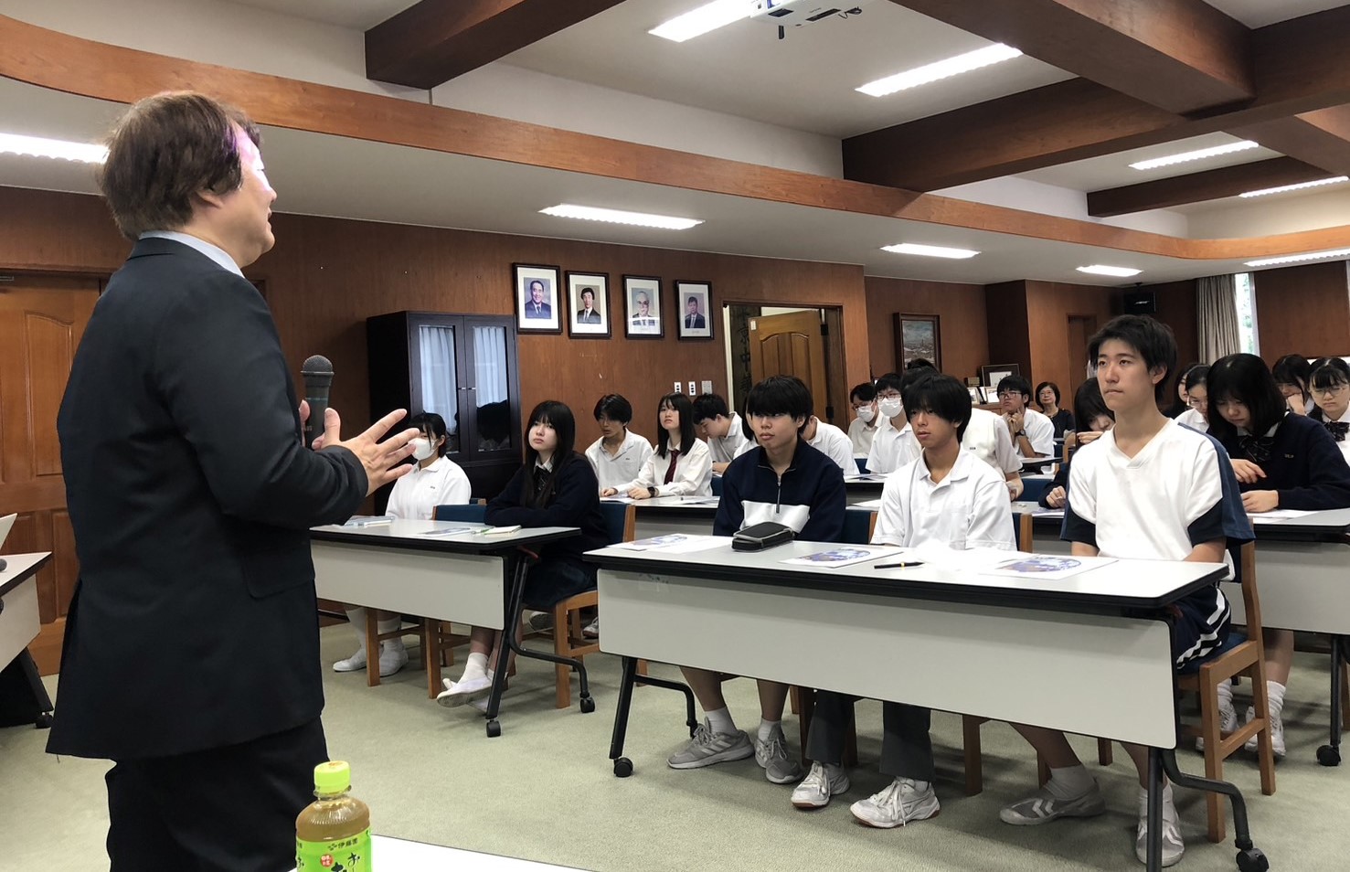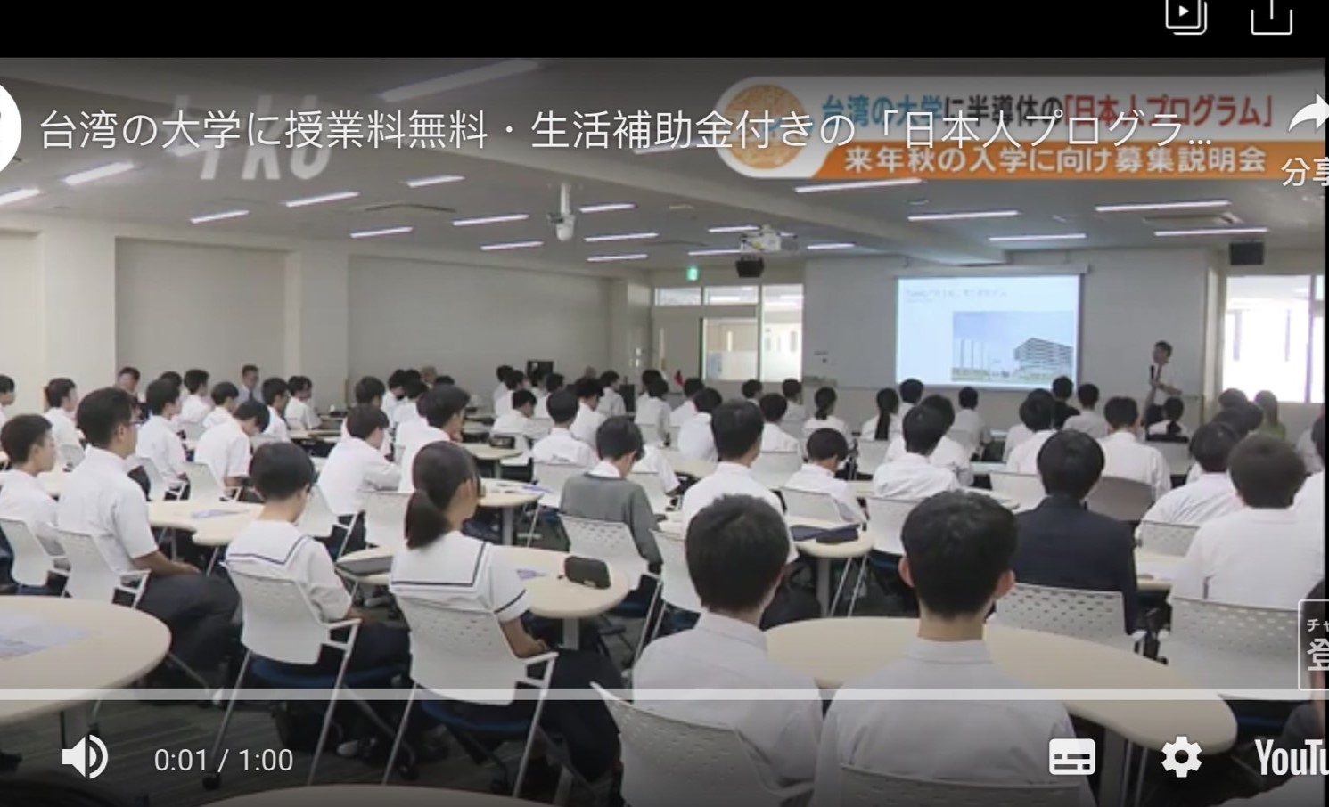 在福岡的大型說明會,現場學生與家長超過110人,新聞媒體畫面。