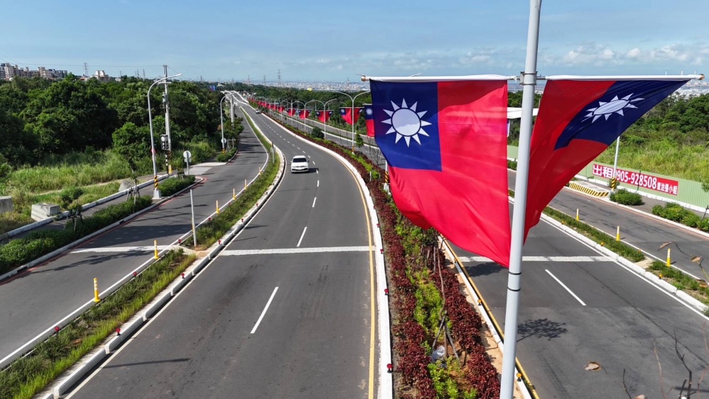 此外,在新通車的中科西南向(西屯路四段)也選定視野良好的路段,首次試行懸掛20組大型直式國旗,也凸顯市府建設團隊秉持創新與積極的精神,持續落實盧市長的政見,致力於打造宜居幸福的理想城市。